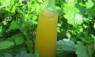 We filteren het kwas door kaasdoek in een fles en laten afkoelen in de koelkast.