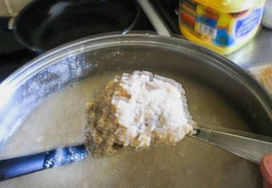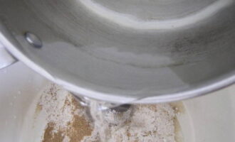- Giet het roggemeel in het water.