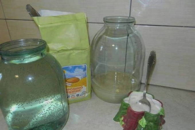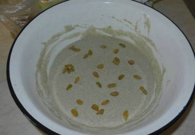 - We doen de crackers in een pot, voegen suiker en rozijnen toe. We vullen ze met koud artesisch water. We bedekken de pot met gaas, in lagen gevouwen.