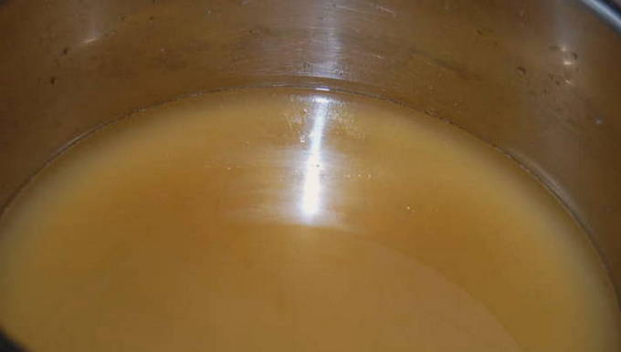 - Haal de bouillon van het vuur, voeg citroenzuur en suiker toe en roer tot het is opgelost. Laat de vloeistof onder de deksel afkoelen tot 37 graden.