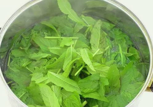 - We wassen de munt en voegen deze samen met de twijgen toe aan het gekookte water. Kook het, af en toe roerend, ongeveer 5 minuten.
