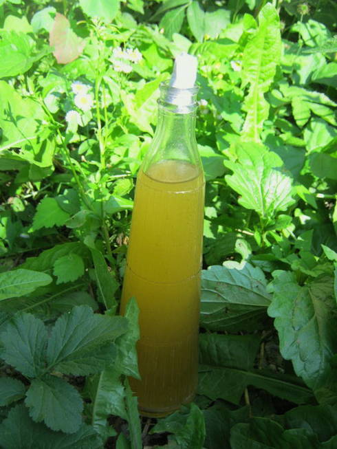We filteren het kwas door kaasdoek in een fles en laten afkoelen in de koelkast.