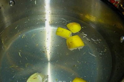 - Was de halve citroen en snijd hem in dunne plakjes. De botten kunnen direct worden verwijderd.