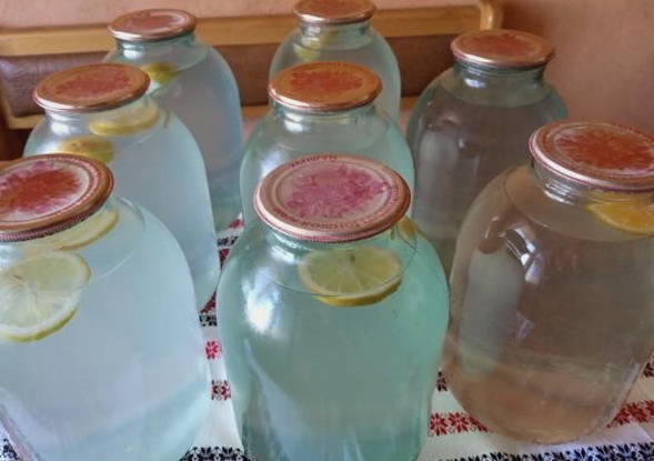 - Doe de partjes citroen in schone potten en vul ze met kokend sap. We sluiten de container met deksels en zetten op een koele plaats totdat deze volledig is afgekoeld.