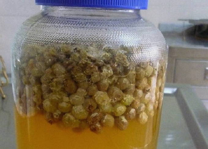 - We spoelen de pot of fles om. We verspreiden gerst met rozijnen erin en gieten het gezuiverde sap erin. We sluiten de container af met een deksel en bewaren deze 4-5 dagen op kamertemperatuur.