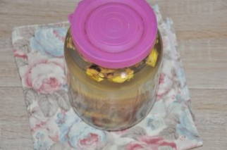 - Doe de partjes citroen in schone potten en vul ze met kokend sap. We sluiten de container met deksels en zetten op een koele plaats totdat deze volledig is afgekoeld.