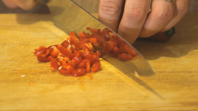 - Mijn chilipeper en in kleine stukjes gesneden.