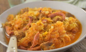 - Stap-voor-stap recept voor het maken van verse kool bigus met worst