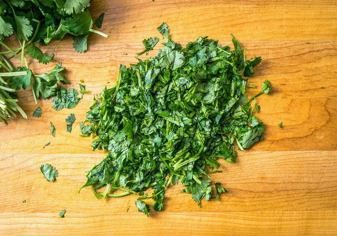 - Mijn chilipeper en in kleine stukjes gesneden.