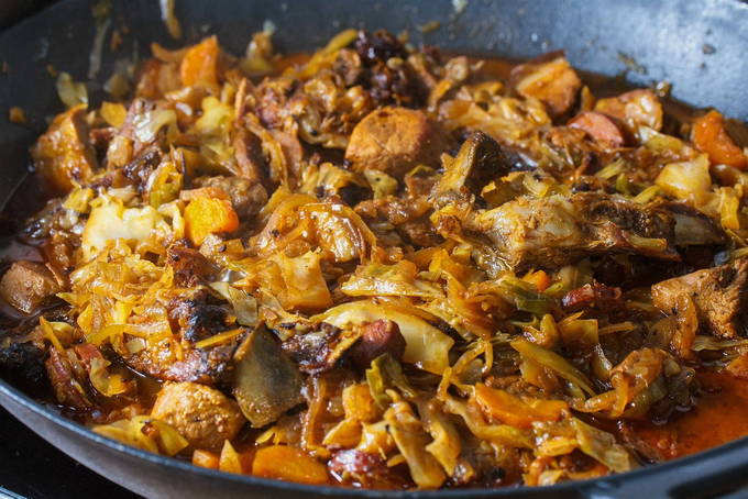 Hoe kook je een heerlijke bigus met kool en gehakt in een pan?
