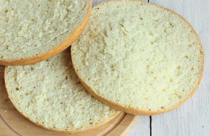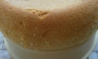 Wikkel de afgekoelde gebakken goederen in plasticfolie en laat ze vier tot vijf uur op kamertemperatuur staan. Na deze tijd wordt het koekje stabieler en kan het gemakkelijk met een voet in de benodigde hoeveelheid cakes worden gesneden.