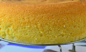 - Scheid de gebakken goederen van de zijkanten van de kom door een dunne spatel tussen hen en het koekje te houden. Draai het product uit de kom ondersteboven op het rooster en laat het volledig afkoelen.