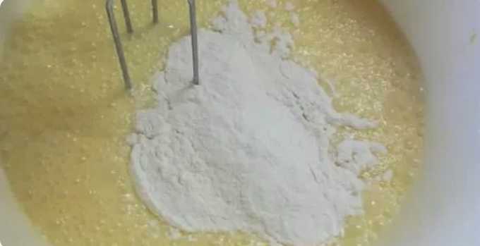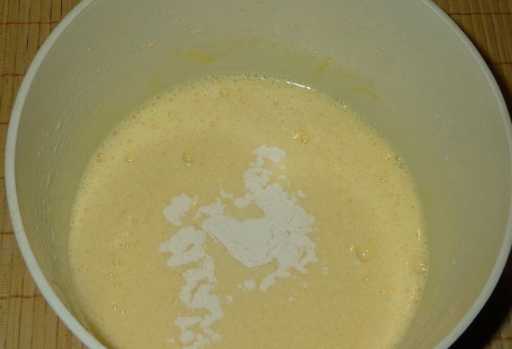 - Zeef de bloem door een fijne zeef samen met bakpoeder en zout. Voeg het droge mengsel toe aan de eiermassa. Meng de bloem door het deeg met een mixer op gemiddelde snelheid. De resulterende consistentie is vloeibaar, luchtig en van gemiddelde dichtheid.