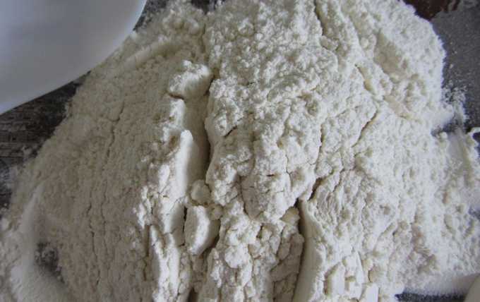 - We bereiden producten voor het maken van deeg. Zeef de bloem door een fijne zeef samen met zout, soda en bakpoeder.