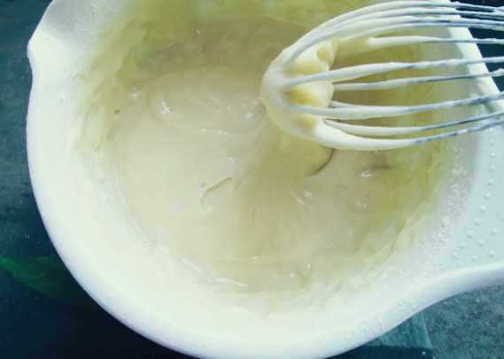- Introduceer afwisselend water en plantaardige olie in de opgeklopte dooiers in een dunne stroom. Klop met een mixer op hoge snelheid tot het volledig is verbonden.