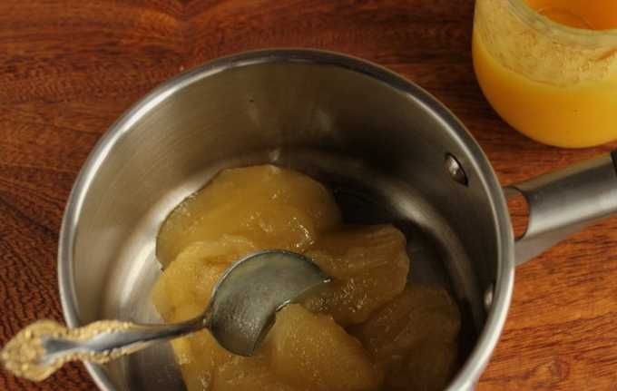 - We meten de benodigde hoeveelheid honing en brengen deze over in een pan.