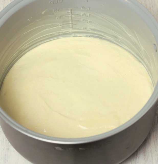 - Vet de binnenwanden van de multicookerkom in met een dunne laag boter en leg het voorbereide deeg erin.