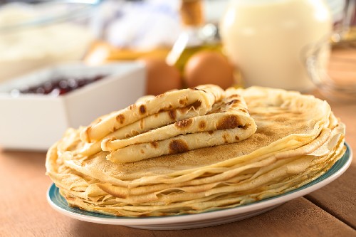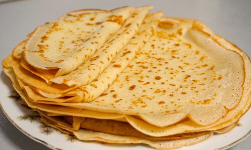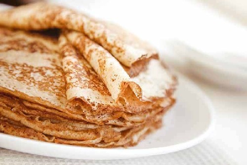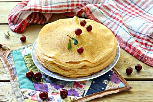 - Kant-en-klare pannenkoeken kunnen op een stapel worden gevouwen, gelaagd met een stuk boter, dan worden ze nog malser.