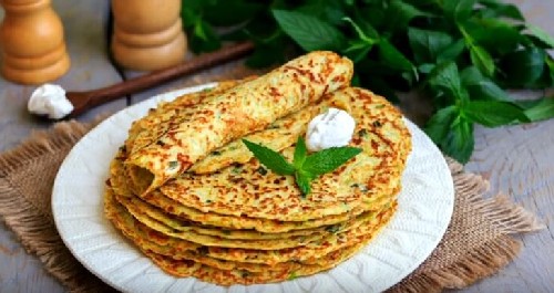 Voor dit recept kun je elke courgette nemen, zelfs overgroeide. Ze voegen sappigheid en zachtheid toe aan de pannenkoeken. Deze pannenkoeken gaan goed samen met zure roomsaus met knoflook en kaas.