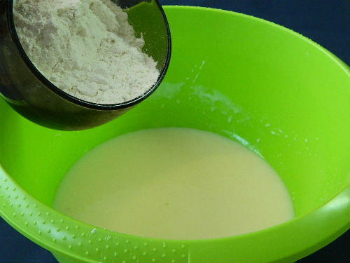 - Combineer de vloeibare en droge componenten van het deeg, roer en zet 15 minuten opzij om de componenten "vrienden" te maken.