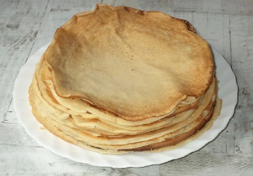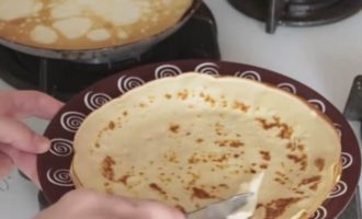 - Bak elke pannenkoek aan beide kanten. We leggen het op een stapel op een bord.