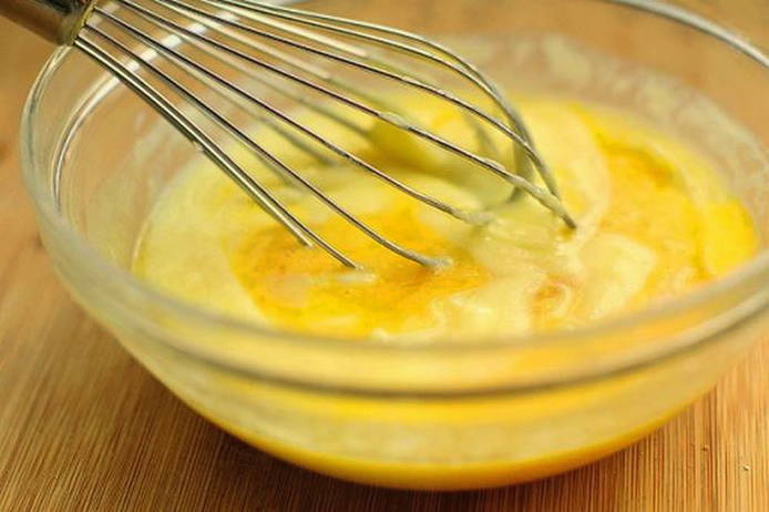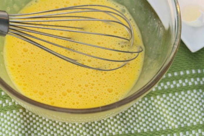 - Breek het ei en klop het met een garde tot een licht schuim.