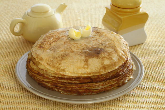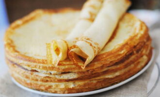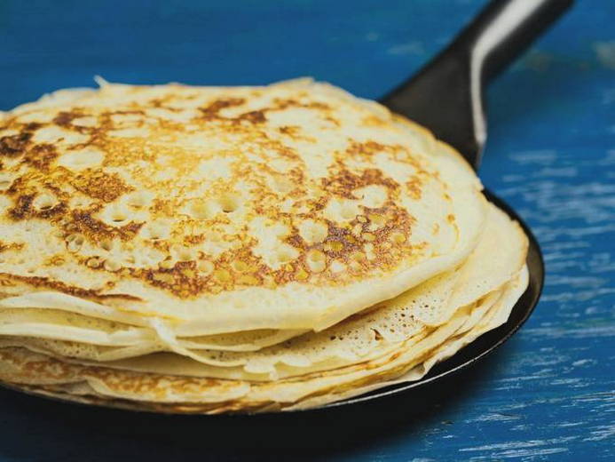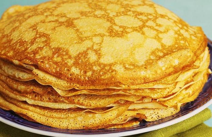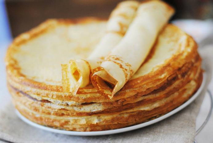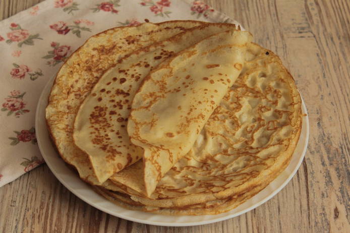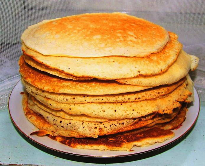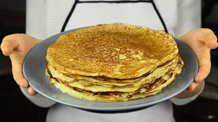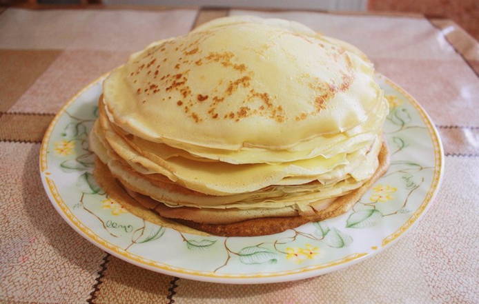 Dunne, verrukkelijke, waanzinnig lekkere pannenkoeken kunnen worden gemaakt van water, bloem en eieren. Dit gerecht kan als ontbijt geserveerd worden met thee, aangevuld met jam, honing of gecondenseerde melk. Precies wat je nodig hebt voor een goede start van de dag!