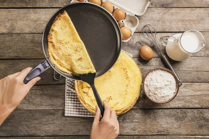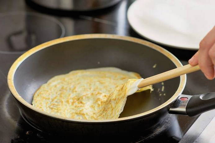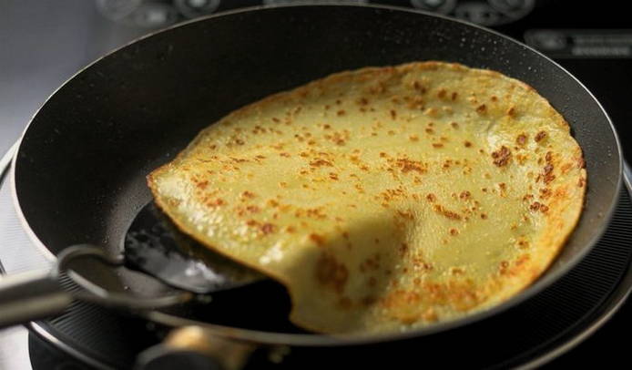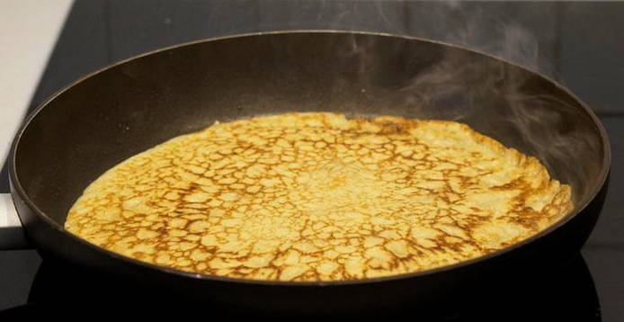 Hoe maak je dunne pannenkoeken in water met eieren en bloem?