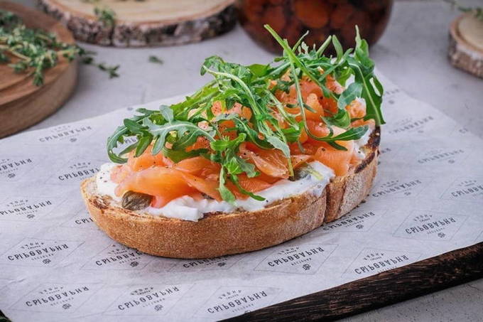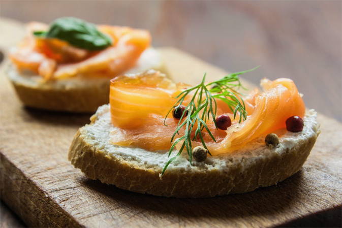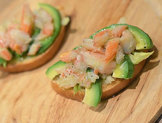 Bruschetta met avocado en zalm is een populair tussendoortje, dat ook nog eens erg handig is omdat het aminozuren en oliën, vitamines en sporenelementen bevat. In plaats van zalm kun je ook andere rode vis gebruiken.