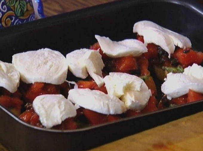 De combinatie van tomaten en mozzarella, een klassieker voor Italianen, lijkt op een caprese salade, maar wordt geserveerd op brood en wordt aangevuld met olijven. Zo'n voorgerecht is geschikt voor een traktatie in een vriendelijk gezelschap of in de natuur.