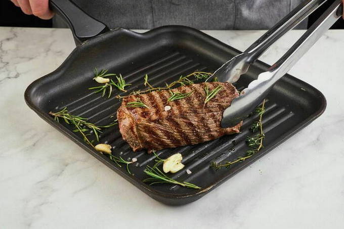 - Zout het vlees, voeg peper toe en besprenkel met olie. Bak de rosbief goudbruin, voeg knoflook, tijm en rozemarijn toe. Zet het vlees vervolgens nog 10 minuten in de oven om te garen tot het gaar is. Haal de rosbief uit de oven en laat rusten.