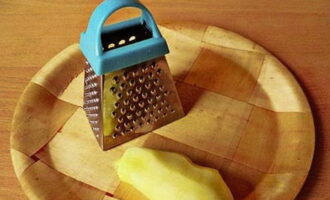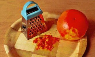 Giet de sinaasappel met kokend water, was en rasp de schil op een fijne rasp.
