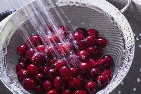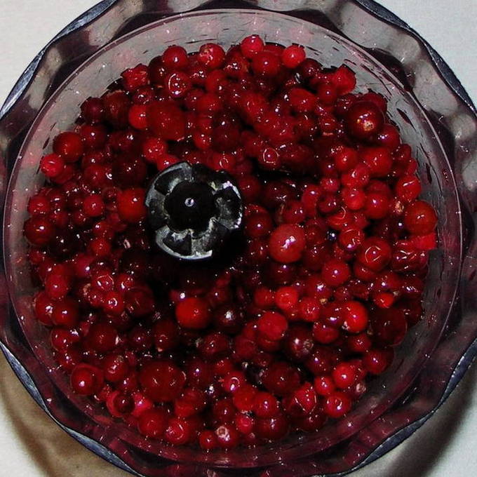 - Sorteer de bessen en was ze. Maal 300 gram rode bosbessen en veenbessen in een blender.