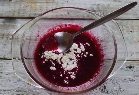 - Breng de bosbessenmassa over in een pan, voeg een beetje bessenbouillon toe. Voeg ook zetmeel toe, meng goed.