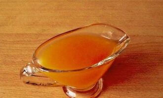 - Voeg vossenbessen, sinaasappelschil, honing, sinaasappelsap toe aan de pan aan de gebakken uien, roer en zet op het vuur. Laat de saus 10 minuten sudderen.