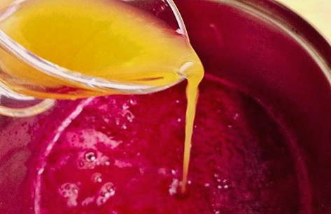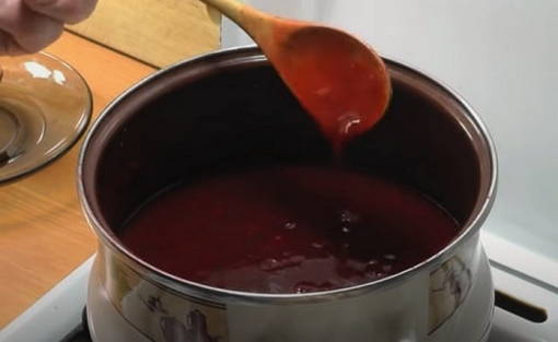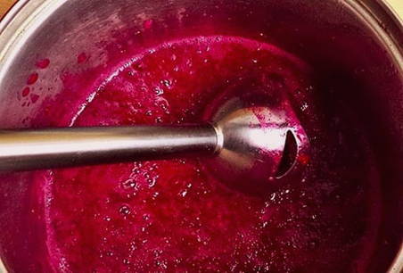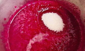 - Breng de bessenpuree over in een pan, zet op laag vuur en breng aan de kook, onder voortdurend roeren.