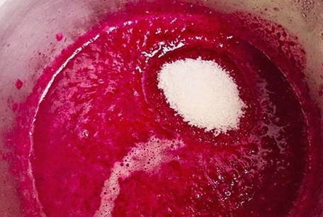 - Breng de bessen aan de kook, voeg suiker toe en kook tot ze zijn opgelost.