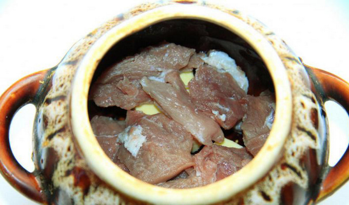 Chanakhi van rundvlees is niet zo vet als van lamsvlees.Het ziet er vrij feestelijk en mooi uit, dus je kunt het gerust beschouwen als het hoofdgerecht voor een feest.