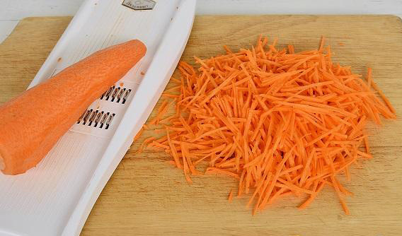 - Rasp de geschilde wortelen.