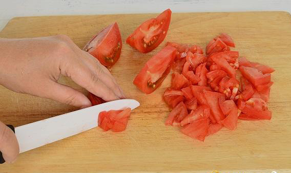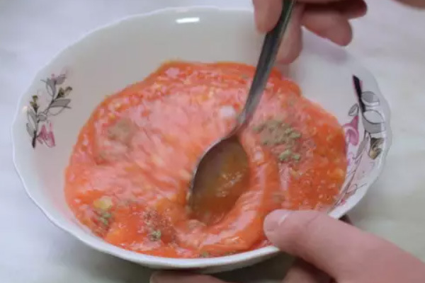 - Tomatensaus maken. Dompel de tomaten 1-2 minuten in kokend water, verwijder dan de schil, hak ze fijn of maal ze in een blender. Voeg gehakte knoflook, zout en peper toe aan de tomatenmassa, meng.