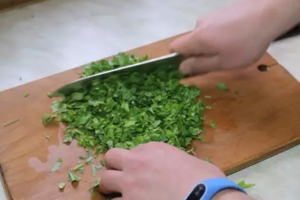 - Was de greens en hak ze fijn met een mes.