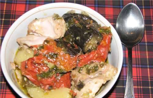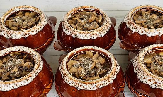 Chanakhi met champignons en kipfilet in potten