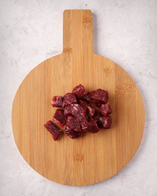 - Was het vlees, dep met keukenpapier en snijd in blokjes.