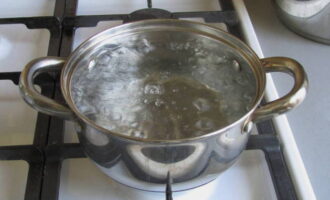 - Bereid een zoutoplossing in een aparte container. Giet water in een pan en voeg zout toe. We zetten de kachel aan. Breng water en zout aan de kook. Filtreer de oplossing door kaasdoek.