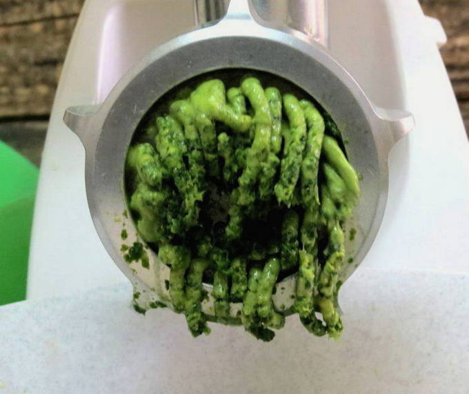 - Snijd na het drogen de daslook in kleine stukjes en haal ze door een vleesmolen.