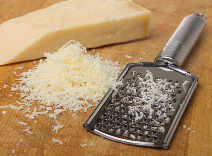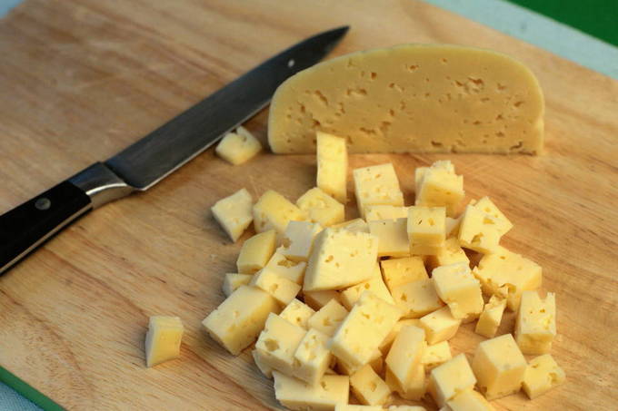 - Plaats de rasp in een diep bord of kom. We wrijven de kaas. Voeg het toe aan de gehakte daslook. Wij mixen.
