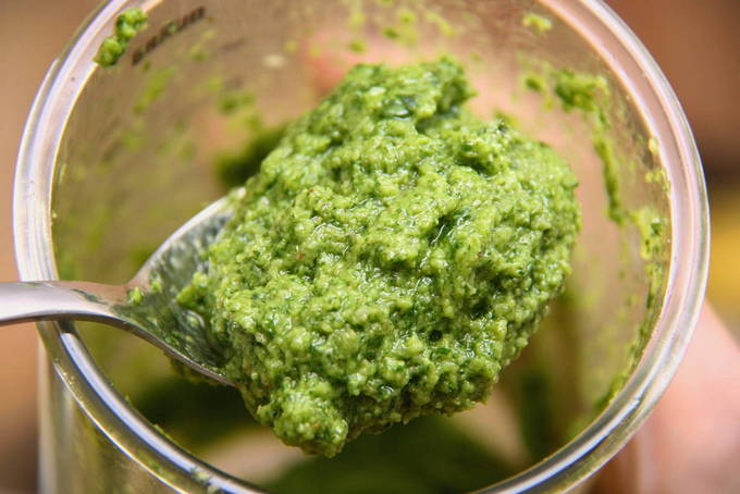 Daslookpesto past goed bij vlees en dikke soepen. Het kan worden gebruikt als basis voor een broodje voor deze gerechten. Pesto kan ook een geweldige, gezonde snack zijn.