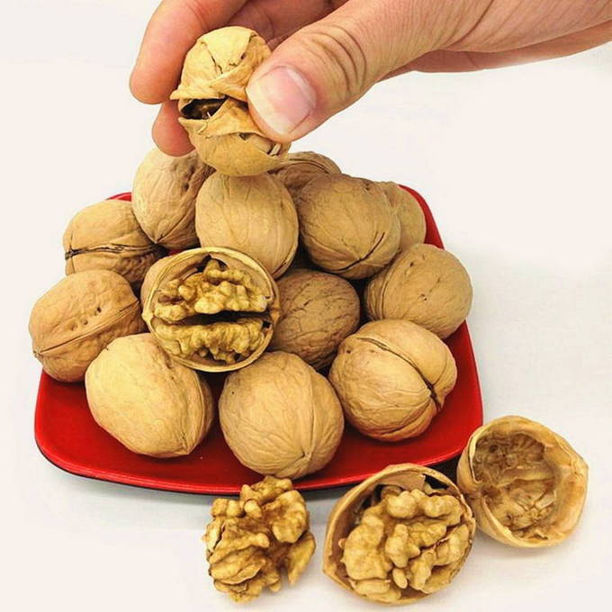 - We schillen de noten van de schaal, halen de vulling eruit en malen het een beetje met onze handen, zodat het handiger is om in een blender te verwerken.