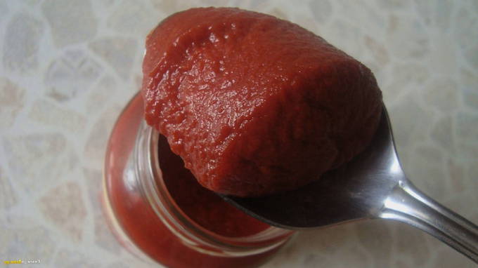 - Een eenvoudig en lekker recept voor daslookkaviaar met tomatenpuree in potten