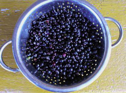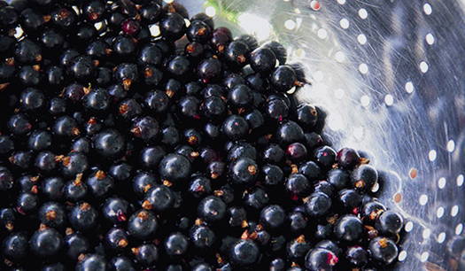 - Sorteer zwarte bessen van twijgen en bladeren, was en droog.
